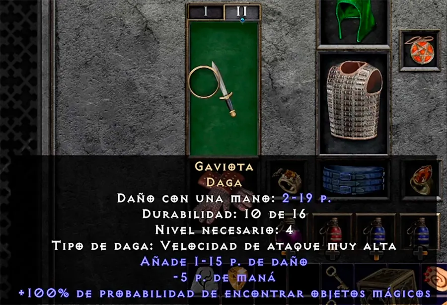 Esta daga nos ofrecerá un +100% de probabilidad de encontrar objetos mágicos. Sencillamente espectacular.